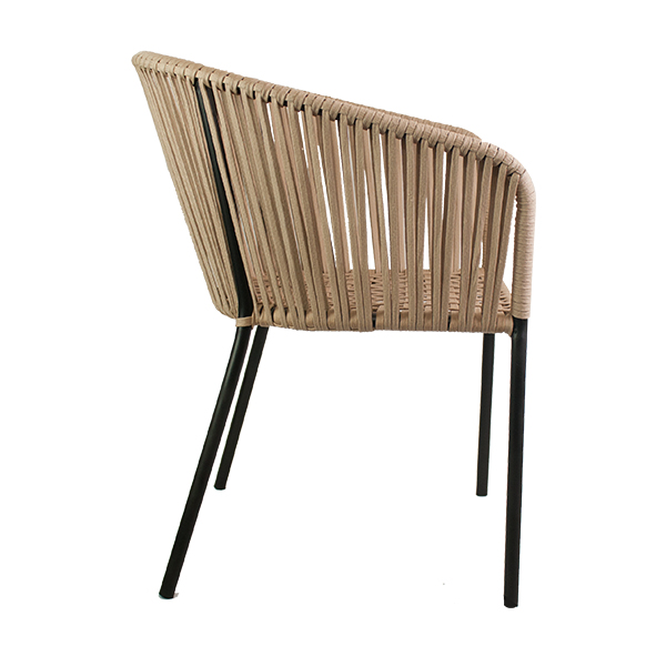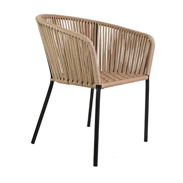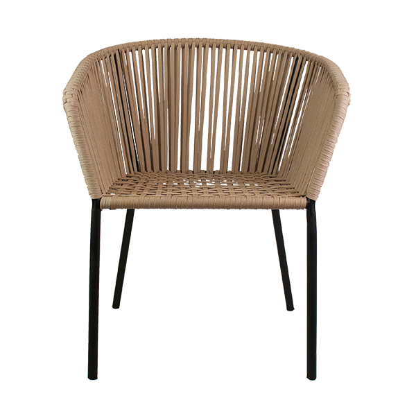Silla Velasco, base de herrería, tejido en nylon. Ideal para uso en escritorio o en tu comedor. Recomendación de uso únicamente en interior o en terraza techada sin exposición al sol ni lluvia.